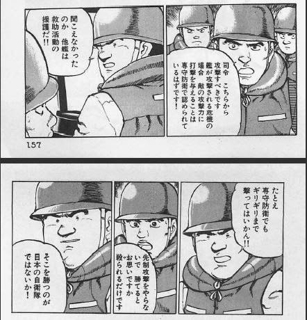 だから艦艇などの大型兵器の運用では、個人の自衛の権利よりもより慎重な現場判断が求められる。 『沈黙の艦隊』では、自衛艦隊の沼田司令官は、慎重な判断の末、専守防衛に徹して最低限の応戦しか行わないことを選択する。